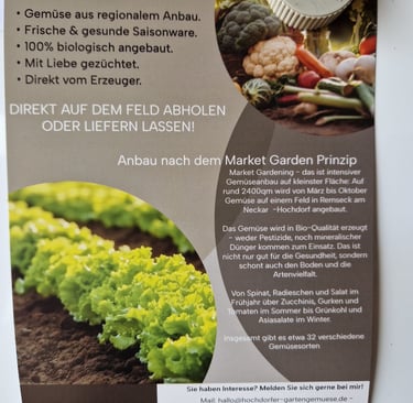 Wir sind Jessi & Dani und haben Hochdorfer Gartengemüse mit der Vision gegründet, die Menschen mit frischen und gesunden Lebensmitteln zu versorgen. Wir betreiben eine Marktgärtnerei, auf dem wir Biointensives Gemüse anbauen. Unser Engagement für Regionalität und Nachhaltigkeit steht im Mittelpunkt unserer Arbeit.